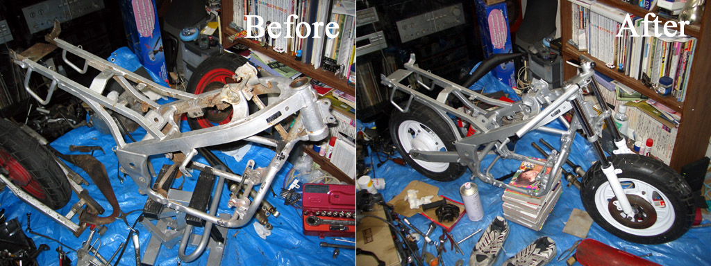 1.車検の準備 ぬるくなったとは言っても、公的な検査を受けるのですから、何もせず・・・と言うわけには行きません。日頃からそれなりの整備をしていれば、直前に慌てて何かをする必要は無いのですが、車検の時くらいしか交換できない部品もあるでしょうから、最低限の部品交換などは自分のために、車検のタイミングで行っておきましょう。 車検の時には定期点検記録簿も参考として一緒に提出しますので、それを見ながら車検整備をするのが一番です。今回の刀の車検では、以下の部品を交換しました。 ・タイヤ(前・後、チューブ):ざっくり4万円 ・エンジンオイル:ざっくり1万円 ・プラグ:ざっくり3千円 ※ブレーキパッドは残量が十分だったし、ブレーキフルードはエア抜きと同時に入れ替わっているので交換せず。バッテリは上がっていて押しがけで筋肉痛になるも、何とか復活したのでそのまま。他、チェーングリスの塗布とか、アクスルシャフトのグリスアップ、ワイヤーへの注油は日常的なメンテナンスなので、特に意識する必要はありません。 整備が終わったら、きちんと記録簿に書いておきましょう。当然の話ですが整備をするには工具が必要です。必要な工具については、薀蓄魂「貧乏人の工具選び(未執筆)」をご覧下さい。