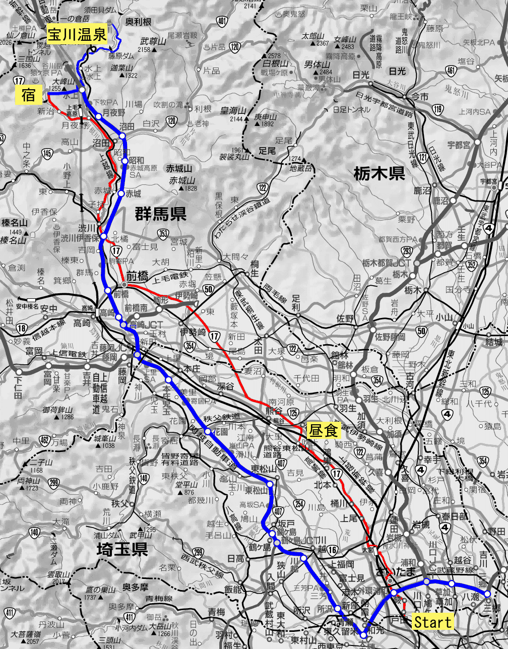 この時点で本来のルートである17号から外れていたので、もうちょっと渋滞の少ない道を選択。